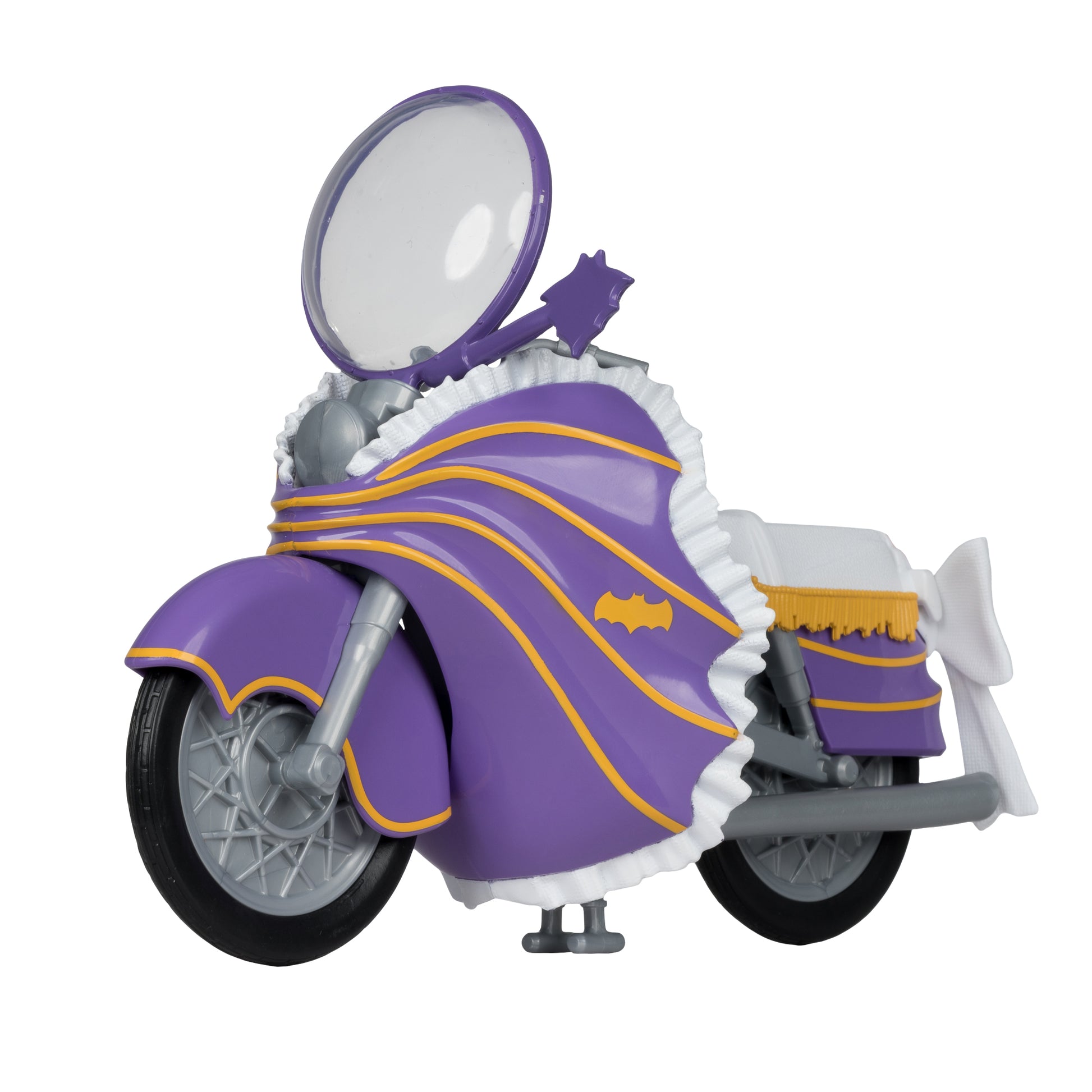 From McFarlane Toys. This incredibly detailed 6" scale vehicle based on Batman, the beloved live-action television series, includes a double-legged kickstand and rolling wheels. Designed to be able to fit all McFarlane Toys DC Retro Figures (figure not included), it comes packaged in an open box with the iconic old school look of the 1960's Batman series.