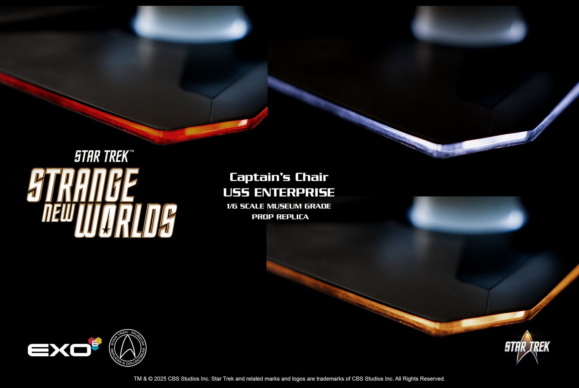 Bring the bridge of the U.S.S. Enterprise directly into your space with the EXO-6 sixth-scale Captain's Chair from Star Trek: Strange New Worlds. This meticulously crafted replica captures every detail of Starfleet's iconic command center, from the sleek modern redesign to the authentic contours that define the flagship's signature look.